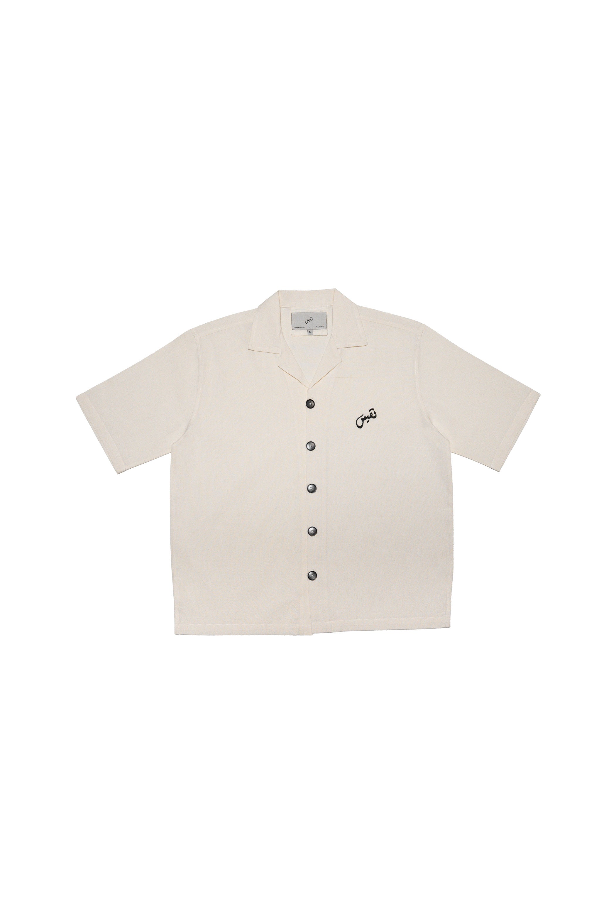 The Handmade Khaddar Cuban Button-Down Shirt — a unique blend of tradition, artistry, and modern style. Made from premium handwoven Khaddar fabric, this shirt is a celebration of craftsmanship and culture. It features the Naqees logo on the front left.