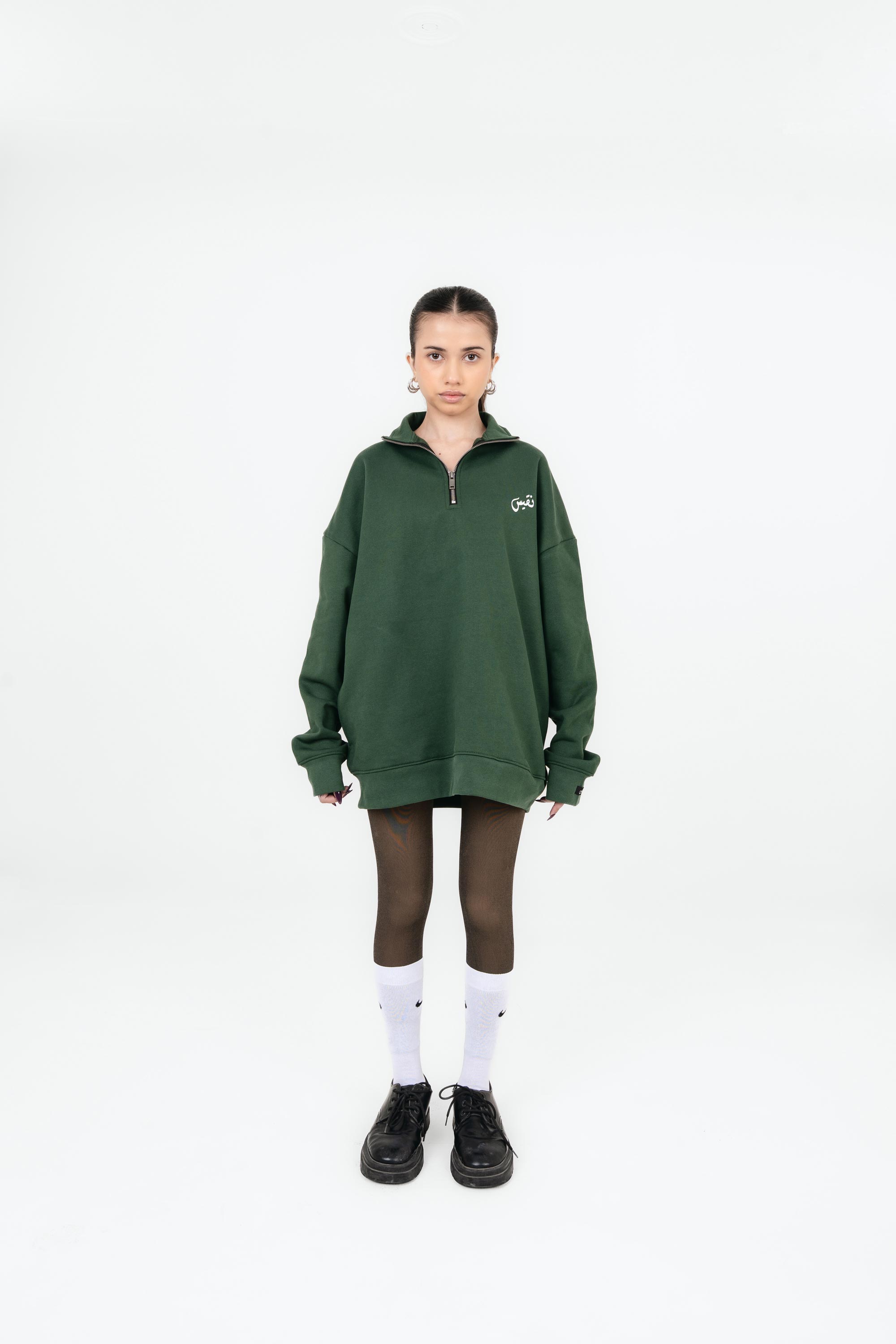 GREEN MOCK NECK QUARTER ZIPPER — ART TO ASHES EDITION
