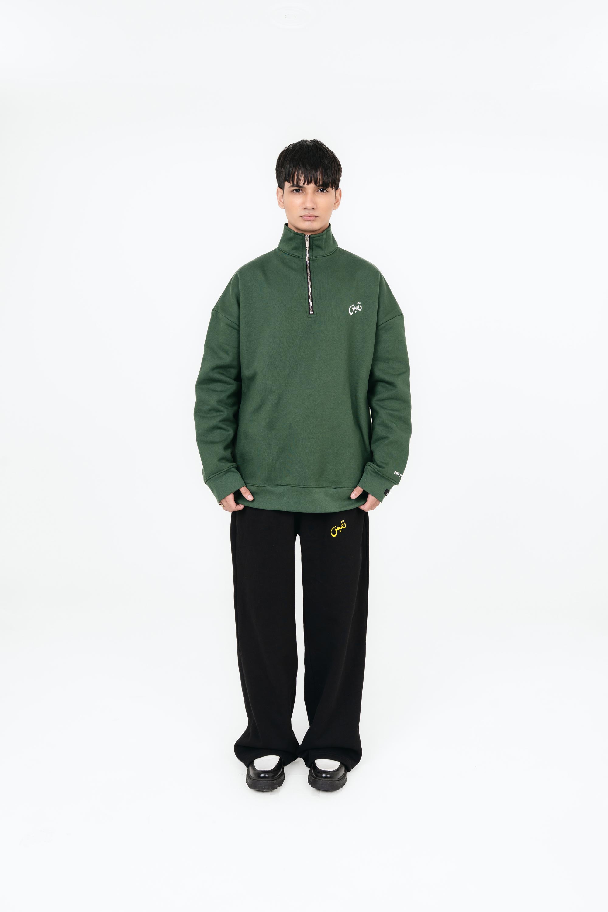 A refined essential with a bold identity — the Green Mock Neck Quarter Zipper blends functionality with clean minimal design. Part of the Art to Ashes collection, this piece brings structure, comfort, and effortless streetwear style in one premium silhouette.
