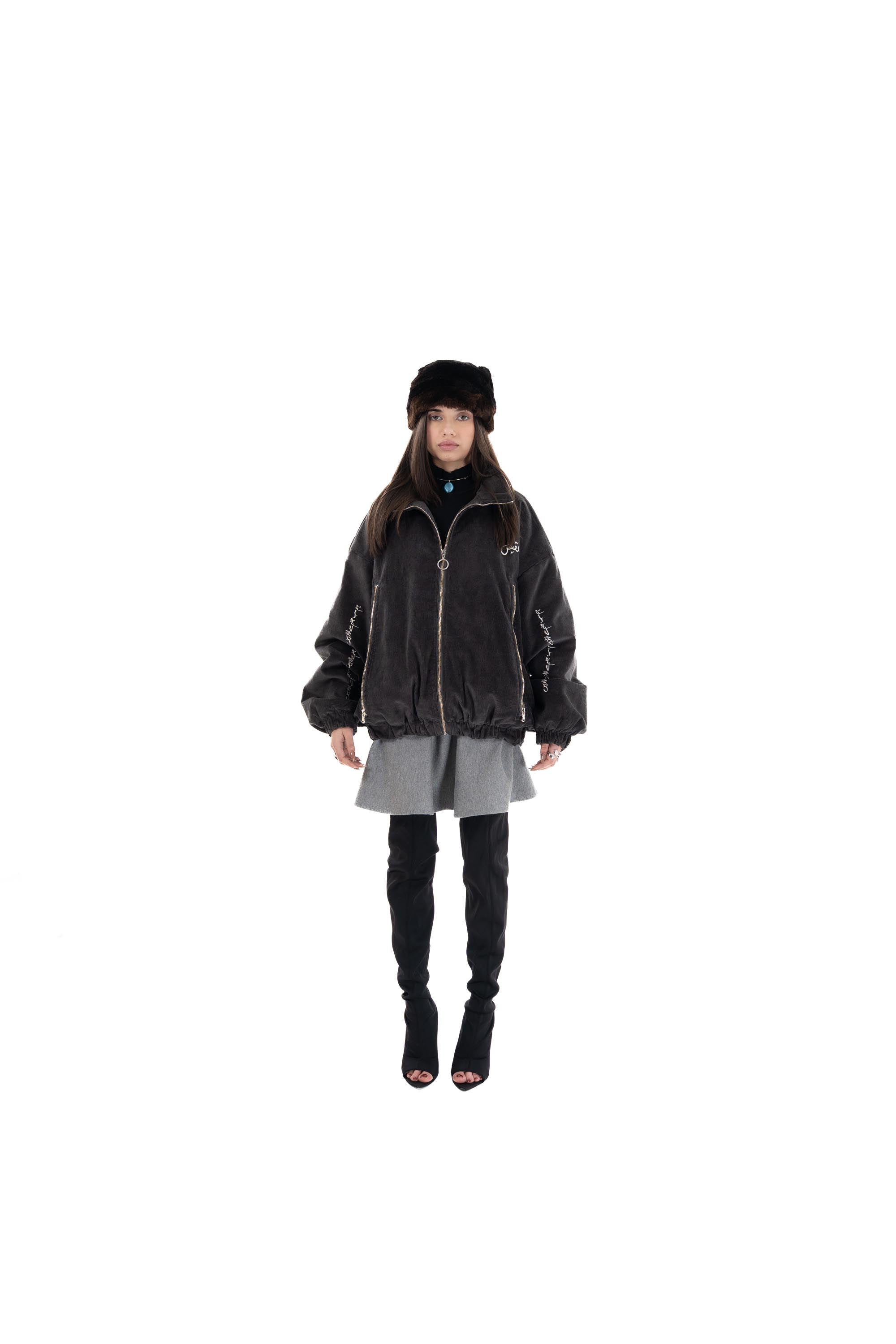 Made from premium heavyweight corduroy and insulated with inner quilting, it provides exceptional warmth without compromising style. Every detail  from the custom brass zippers to the layered embroideries is intentionally designed to create a timeless piece rooted in identity and expression.